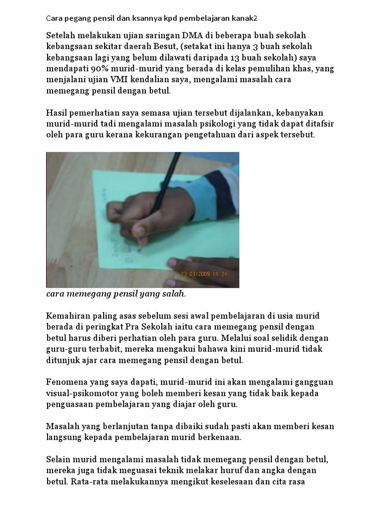 Cara Pegang Pensil Dan Ksannya Kpd Pembelajaran Kanak2 Pdf